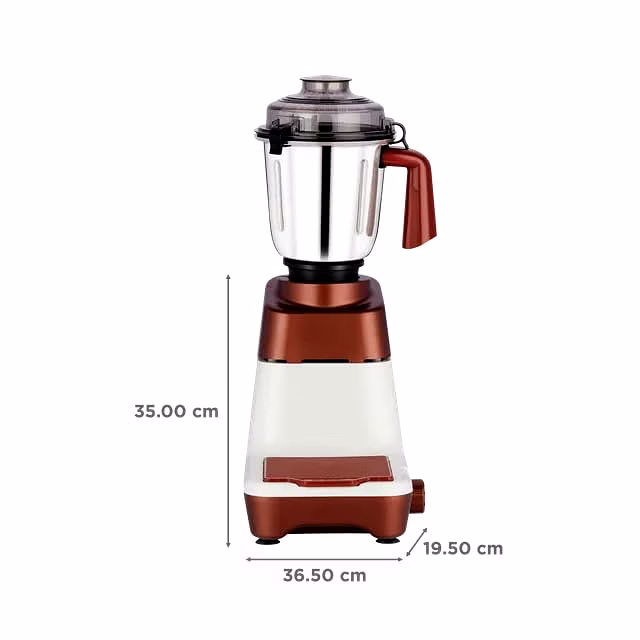 It comes with 3 stainless steel jars – a 1.5L liquidizing jar, a 1L grinding jar, and a 400ml chutney jar – all fitted with ergonomically designed handles for better grip and control. The sleek White & Metallic Brown body adds a modern touch to your kitchen while offering sturdy performance.